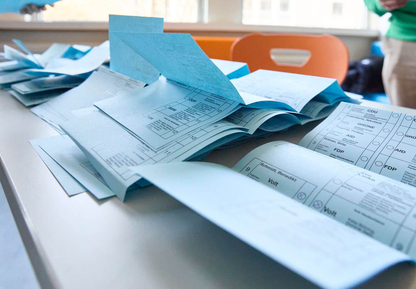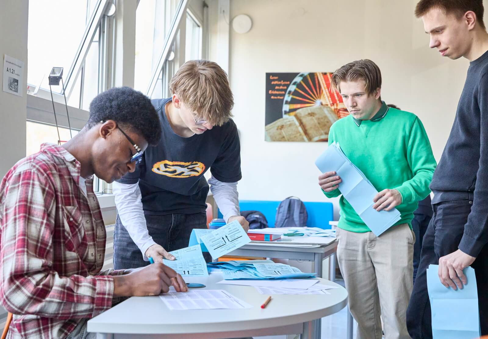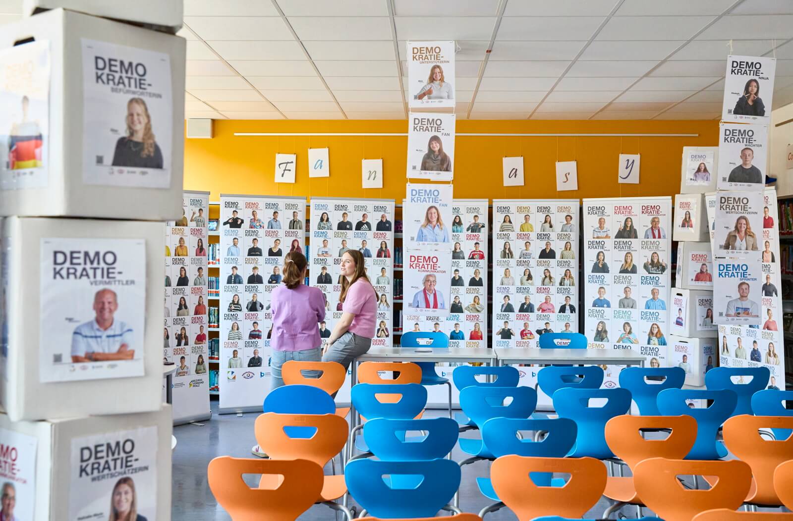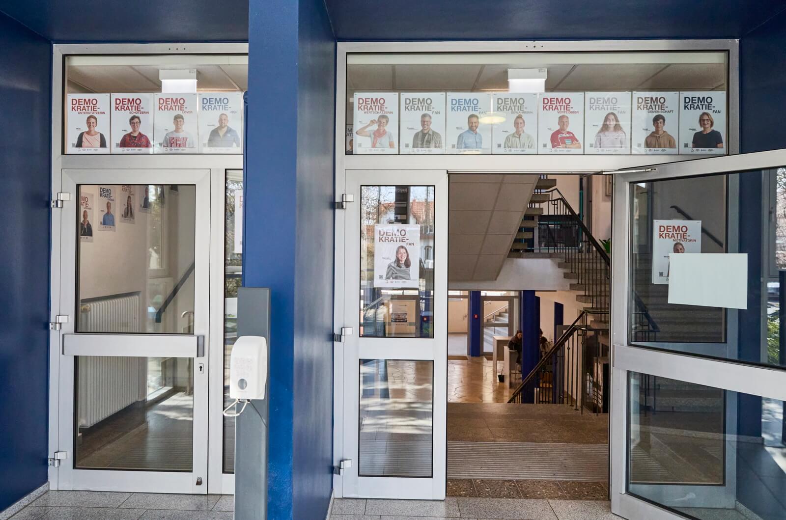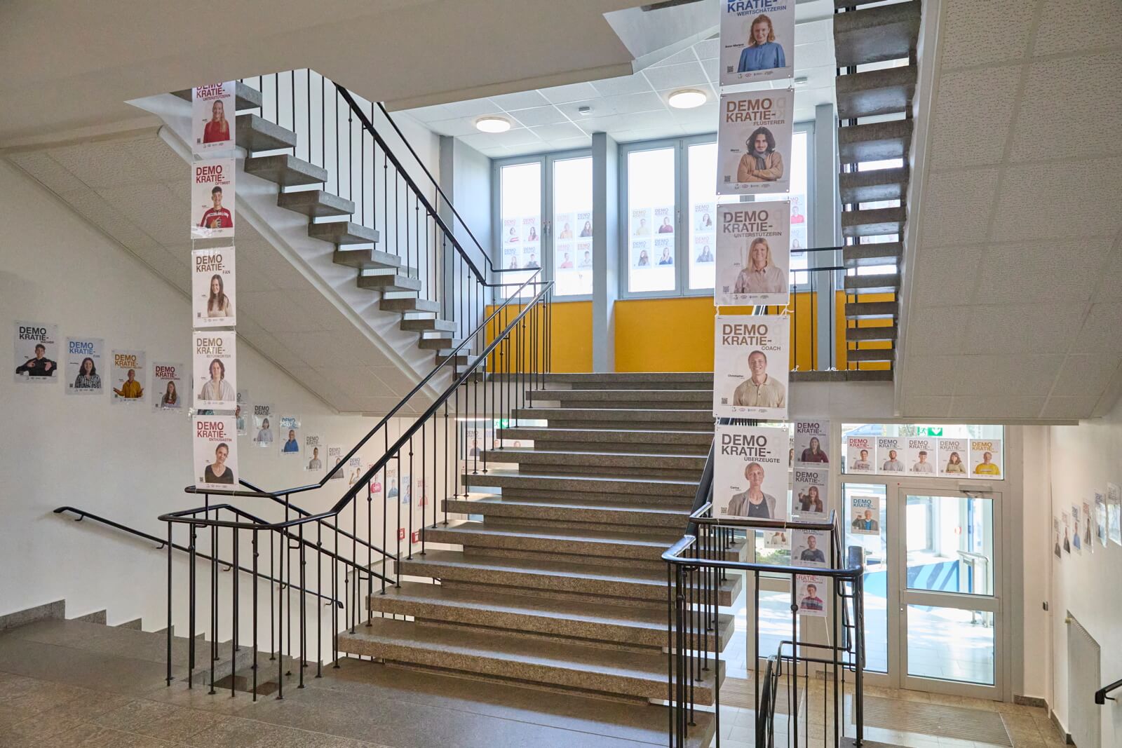 Das Leininger Gymnasium in Grünstadt kombinierte unsere Aktion mit einem“ Tag der Demokratie“, mit Workshops, Mind maps und einer großen bunten Demokratie-Girlande im Treppenhaus.