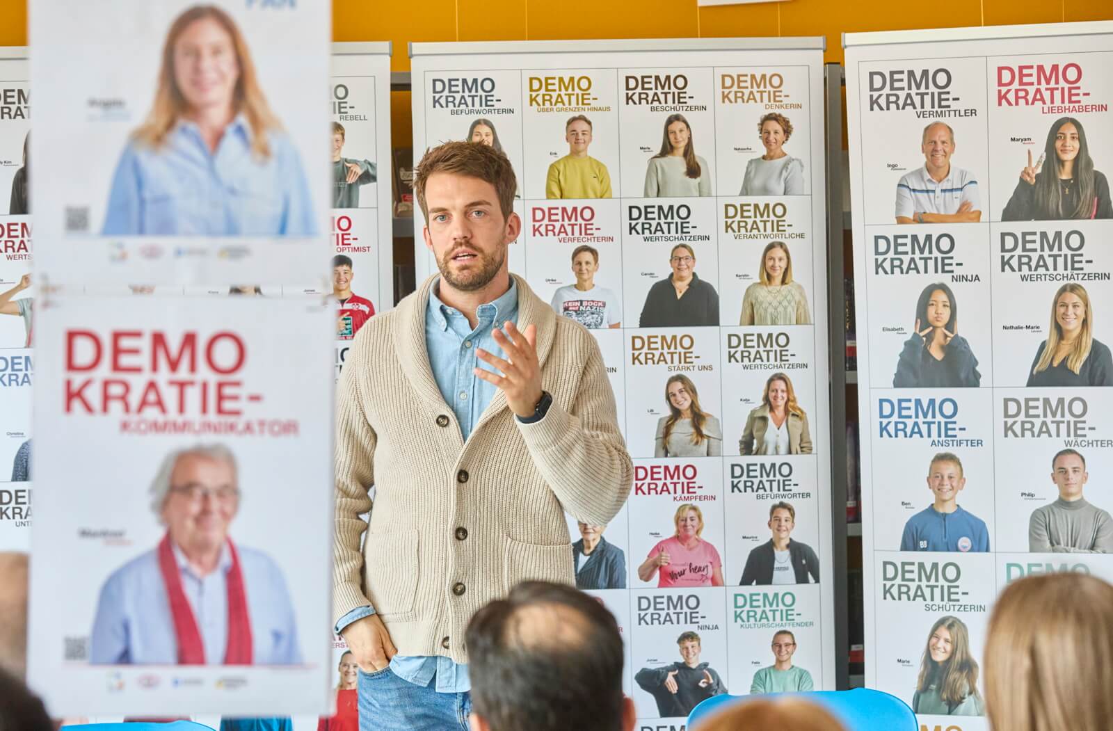 Herzstück des Tages war der Wahl-O-Mat zum Kleben, an dem sich Besucherinnen und Besucher aktiv beteiligen konnten. Darüber hinaus boten die verschiedenen Stände weitere Mitmachaktionen, die zum Austausch über demokratische Werte und gesellschaftliche Vielfalt anregten. Ein besonderes Highlight war die Foto-Aktion „Demokratie – Akzeptanz – Vielfalt“, die zahlreiche Teilnehmende nutzten, um ein sichtbares Zeichen zu setzen.