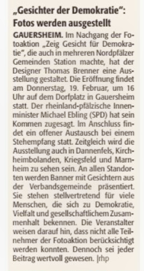 Gesichter der Demokratie - Fotos werden ausgestellt
